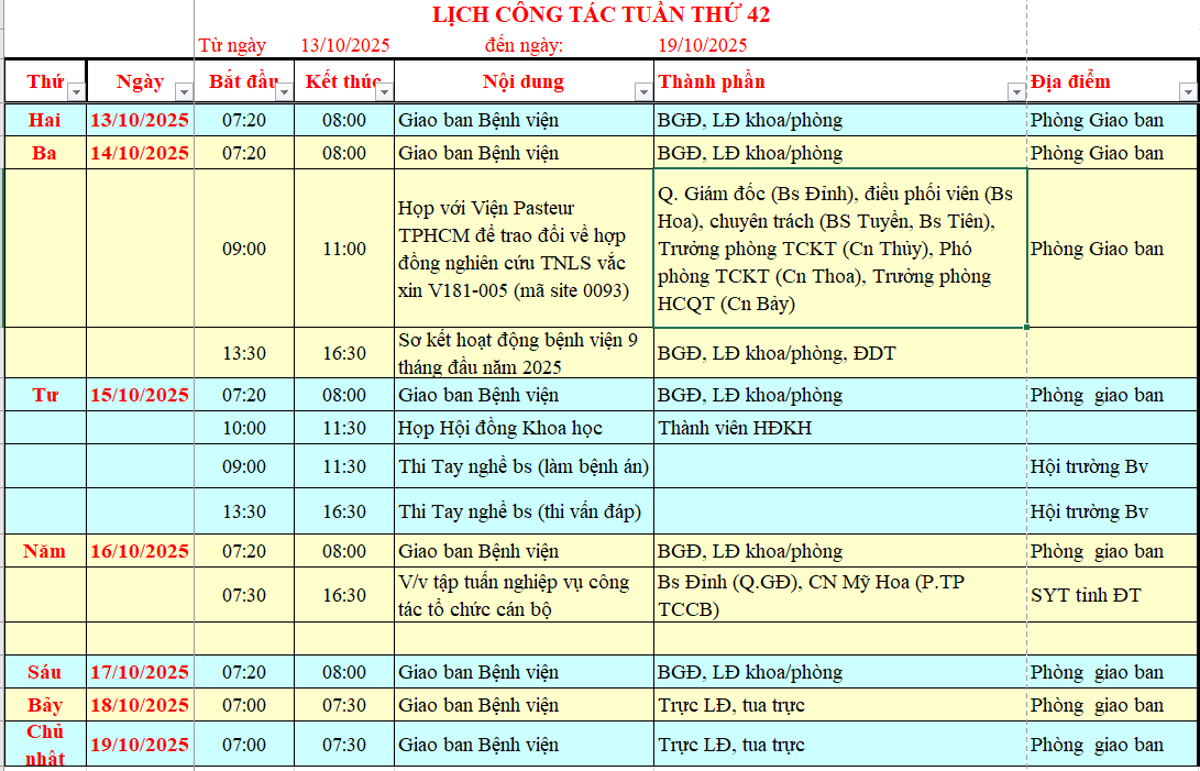 - Lịch công tác