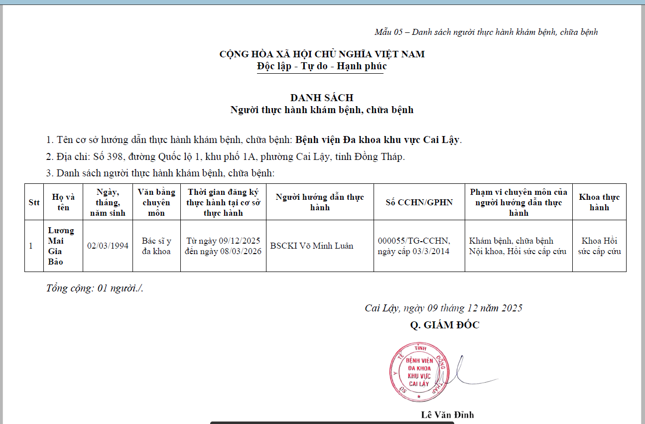 Về việc công nhận kết quả đánh giá, xếp loại chất lượng đối với tập thể khoa, phòng và viên chức, người lao động tại Bệnh viện đa khoa khu vực Cai Lậy năm 2025.