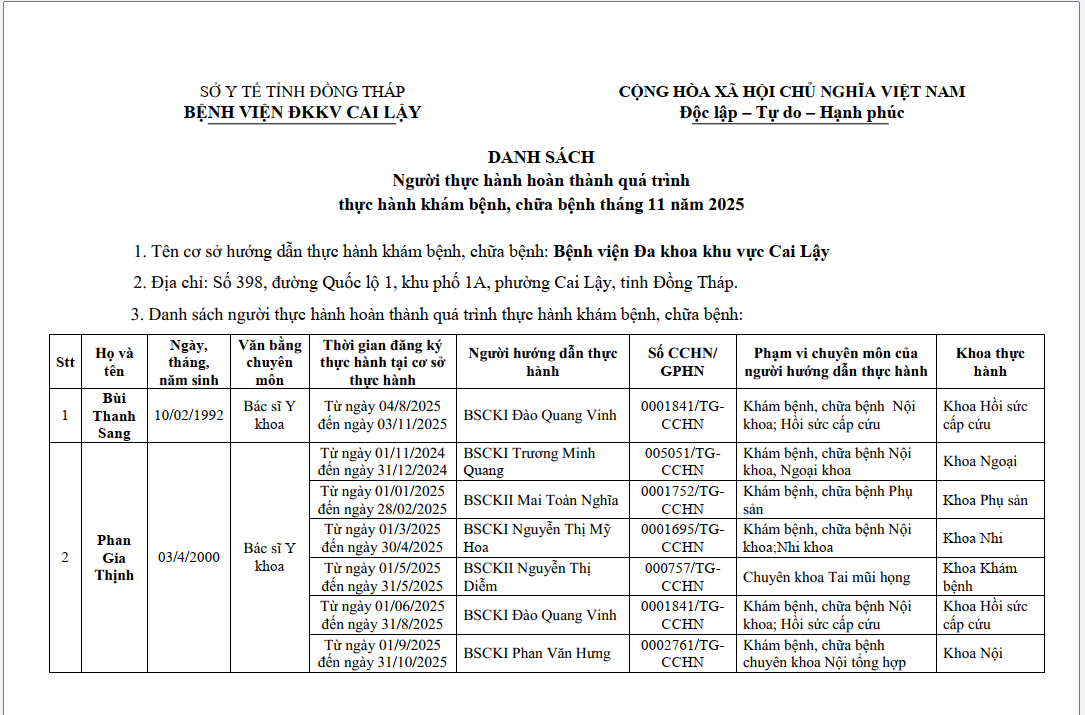Khám nhanh và khám chuyên gia