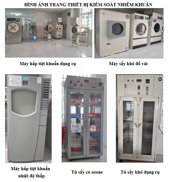 III. Cơ sở vật chất và trang thiết bị: 1. Cơ sở vật chất: năm 2020, khoa KSNK được quy hoạch xây mới tại tòa nhà 6 tầng, dự kiến năm 2023 đưa vào sử dụng cơ sở khang trang và đúng quy định hơn. 2. Trang thiết bị: khoa được trang bị đầy đủ các trang thiết bị phục vụ cho công tác chăm sóc người bệnh như: - Máy hấp tiệt khuẩn bằng hơi nước, máy ép túi chuyên dụng. - Máy hấp tiệt khuẩn nhiệt độ thấp công nghệ Plasma. - Máy giặt, máy sấy công nghiệp, máy giặt gia đình các loại. - Tủ sấy khô dụng cụ nhiệt độ thấp, tủ khử khuẩn dụng cụ có Ozone