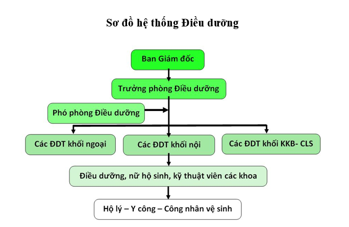 1. Giới thiệu chung: Phòng Điều dưỡng được thành lập 1999. Là phòng nghiệp vụ có chức năng tham mưu, giúp Giám đốc bệnh viện quản lý điều hành, tổ chức thực hiện kiểm tra, giám sát công tác điều dưỡng, chăm sóc người bệnh trong bệnh viện.